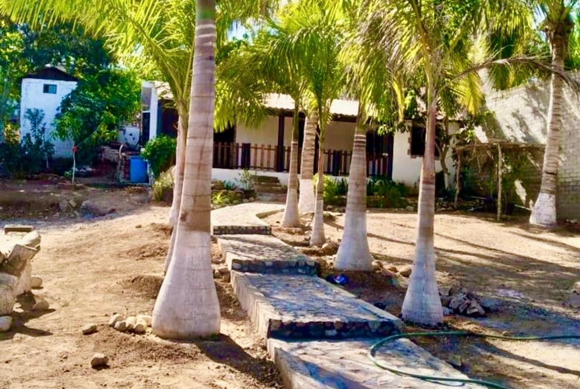 Árboles frutales, horno artesanal, estacionamiento para 6 carros, palmeras y patios amplios.
